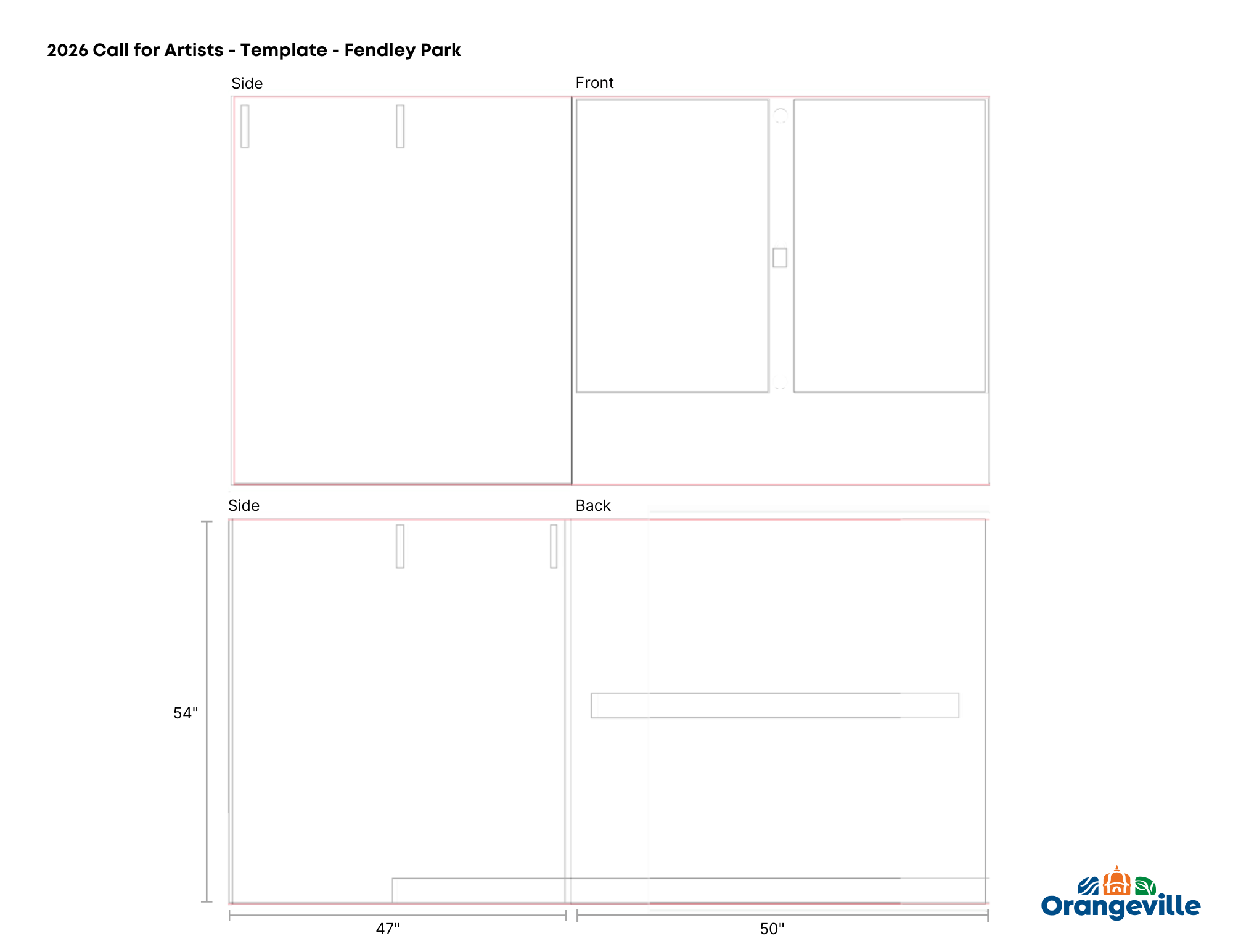 Please note these templates are for submission purposes only. Selected artists will be required to provide full quality, print-ready .jpg or .tiff files of the artwork at their own expense within two weeks of being notified. Artists whose works have been selected for display will be notified by Friday, June 26, 2026. Artwork will be professionally installed using a high-quality vinyl wrap.