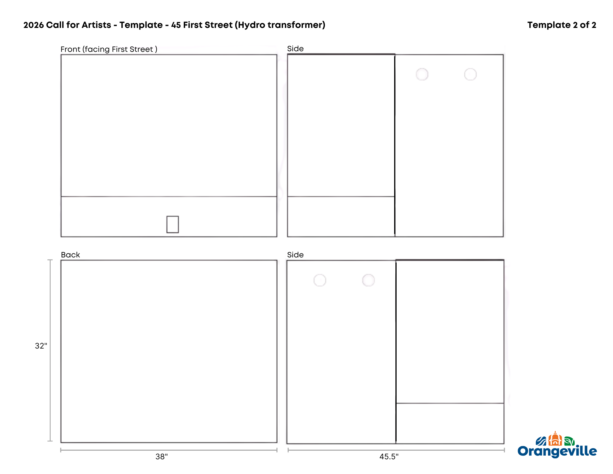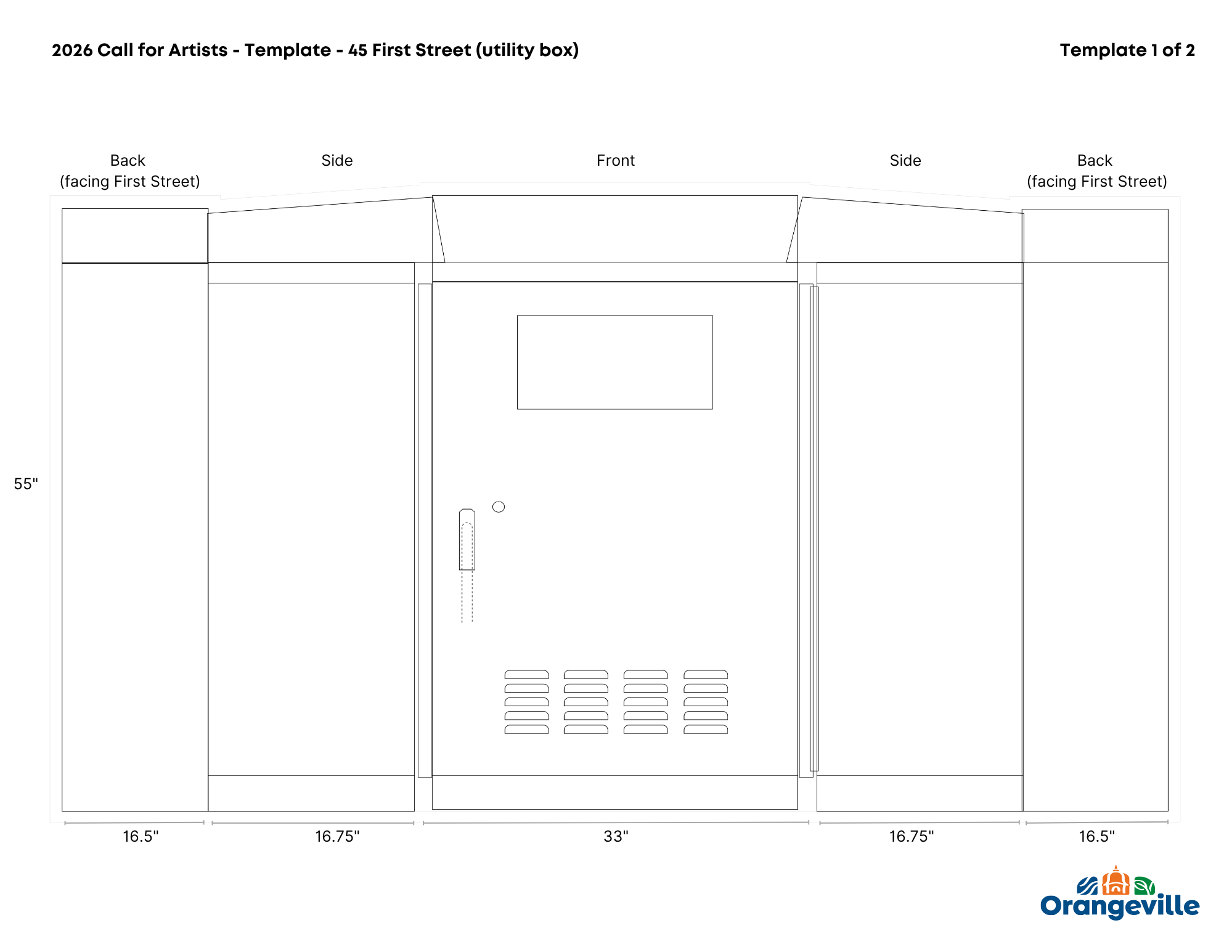 The provided Artist Layout templates help to show how the design will be installed on the utility box. It is recommended that artists aim to keep the focal point of their art on the front panel of the utility box and away from edges. Artists should consider utility box features such as poles, identification numbers, keyholes, vents, and handles as part of their submission. A visit to the utility box location is recommended in advance of submission. If you require assistance with the template, please email us at [email protected]. |